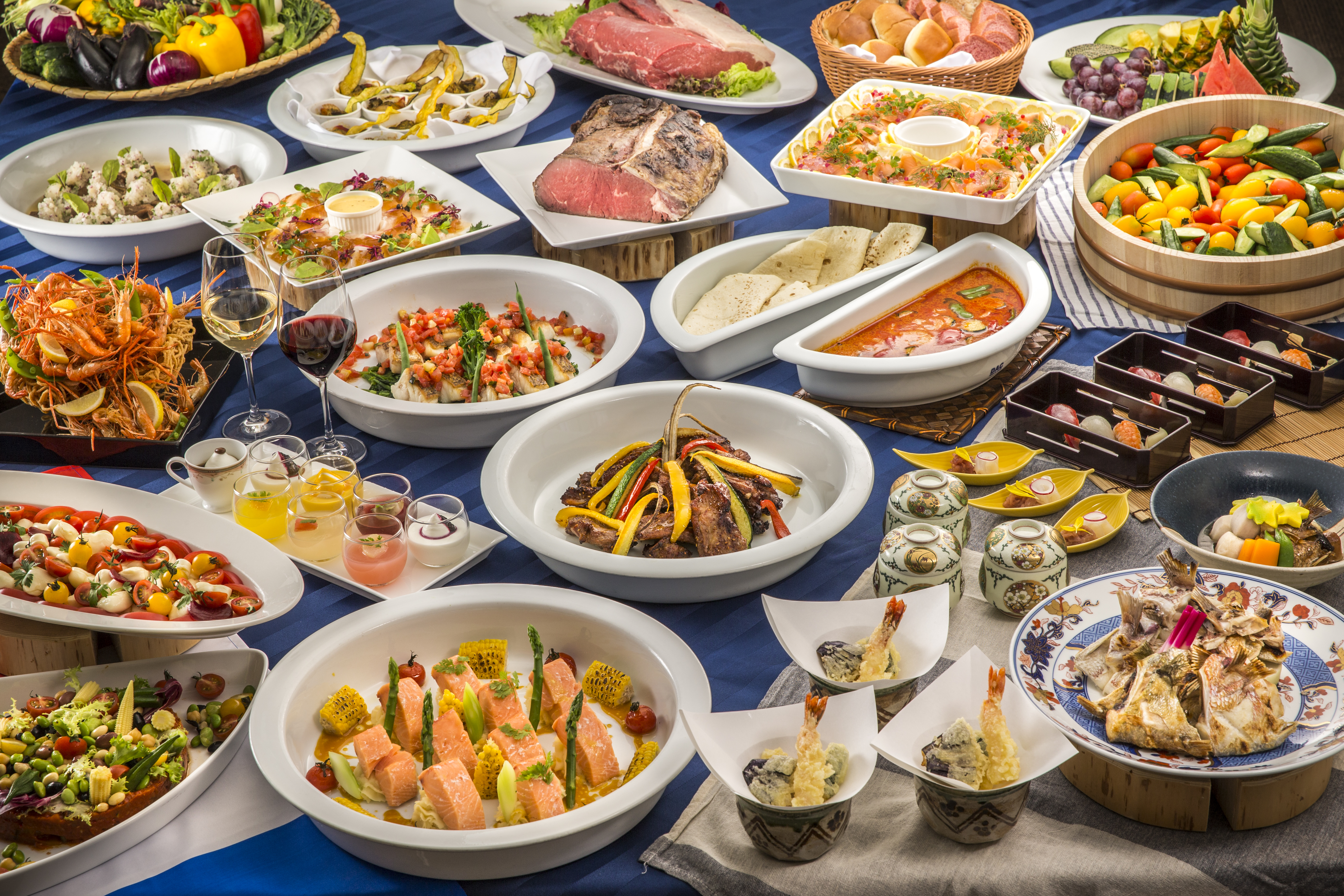 【ファミリーに大人気】みんなでわいわい♪旬の食材を取り入れた和洋中折衷ディナーブッフェ☆1泊2食