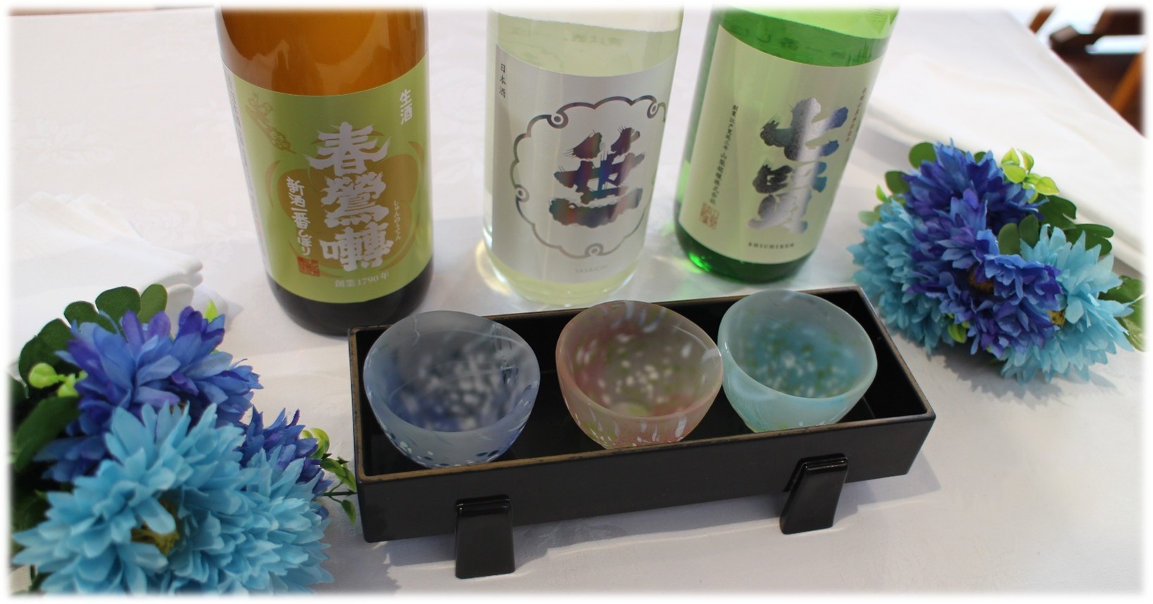 3つのガラス猪口に少しずつ、3種類合わせて1合分ですので、色々な味を楽しみやすいです。